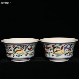 明成化斗彩天马纹杯,高5cm直径7.3cm