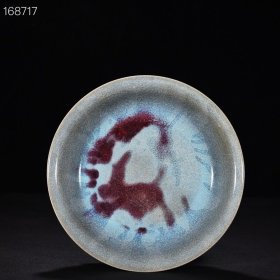 元钧窑曜变玫瑰紫釉天马纹折腰盘 高4厘米 宽20厘米