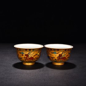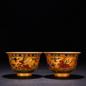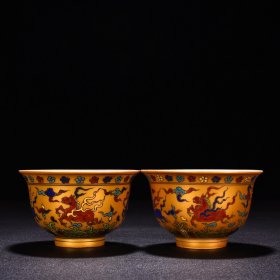 明宣德五彩描金天马纹马蹄杯 古玩古董古瓷器