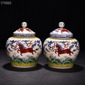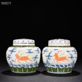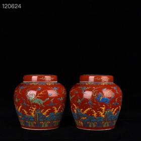 明成化青花矾红天马纹盖罐 高15厘米 宽15厘米