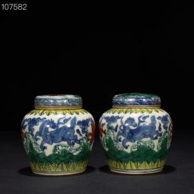明成化斗彩天马纹天字罐 高14厘米 宽14.5厘米