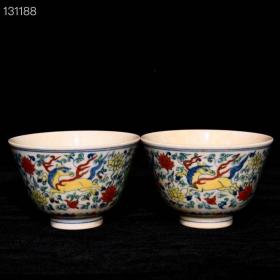 明成化斗彩天马纹杯,高4cm直径7.8cm