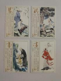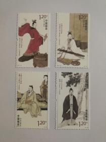 老邮票:2013-15《琴棋书画》连体邮票(“四字”系列邮票之一)双连小全张整版小版票(全套共4枚*2:高山流水、奕秋课徒、怀素临池、道子画壁)中国邮政发行(第34届优秀邮票奖)带厂名(北京邮票厂)