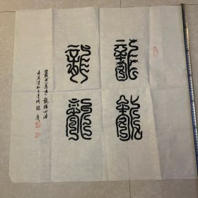【百岁书家.编号Z103】李伟(钖庚)书法作品.篆书斗方(鸟虫)“龙腾四海”(正文4字).长68厘米×宽68厘米宣纸本壹幅(附赠书家相关简介书法图集一册)