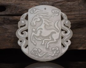 和田玉龙马精神牌 规格: 5.5×5.5×0.7厘米,重 39克