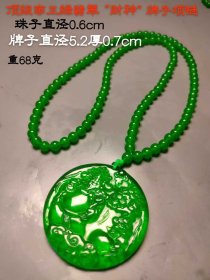 266_顶级帝王绿翡翠“财神”牌子项链,108颗翡翠链。 重68克