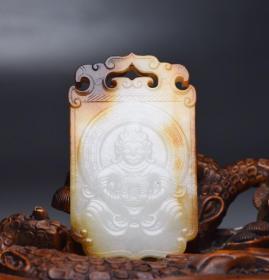 和田玉守护神牌 规格: 6.6×3.8×0.8厘米 重 45克