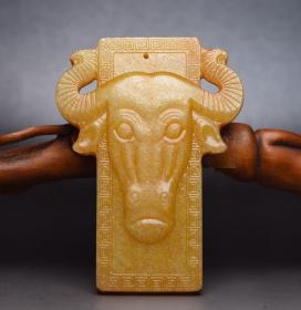 乡下收的清代和田玉牛神牌尺寸7.6X5.6X1.0厘米