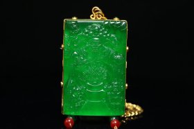 53_顶级帝王绿翡翠“财神”牌子项链,108颗翡翠链。