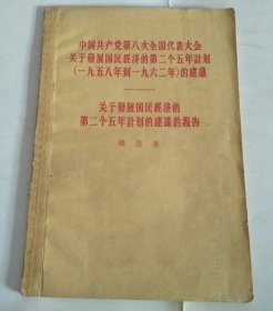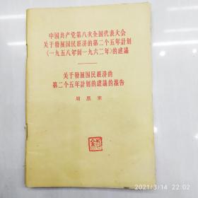 中国共产党第八次全国代表大会关于发展国民经济的第二个五年计划(1958年到1962年)的建议 // 关于发展国民经济的第二个五年计划的建议的报告 周恩来 1956年一版武汉二印 32开