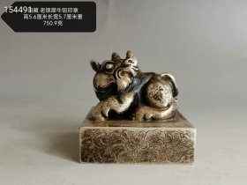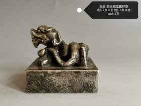 62_旧藏老银螭龙钮印章,银质古朴,螭龙钮雕琢矫健灵动,印身花卉纹饰细腻。高5.2厘米,长宽5.7厘米,重668.4克,集老银工艺之精与瑞兽文化之韵,是藏鉴中颇具分量与古韵的珍品。1_DuspPG