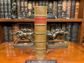 1856《莎士比亚戏剧集》 Dramatic Works of Shakespeare 。英式小牛皮装帧,竹节背压花烫金,书口理石云纹,厚重大开本,古韵十足,保存完好。