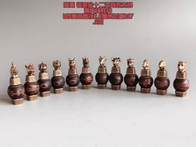 旧藏 铜鎏金十二生肖嵌朱砂沁天珠挂件,每一尊都精巧别致。生肖兽首栩栩如生,搭配古朴的朱砂天珠,古韵与神秘交织。长5厘米,直径2.0厘米 ,总重287.8克,集工艺与文化于一身,是收藏与赏玩的绝佳之选。