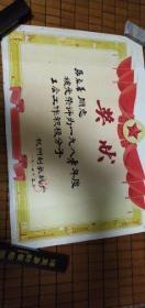 1981年二月杭州制氧厂颁发奖状一张:张友善同志被光荣评为1980年度工会工作积极分子(38X53)CM【品好】