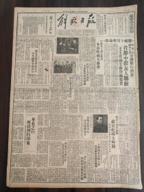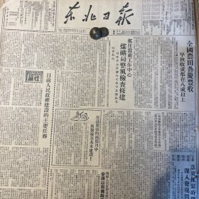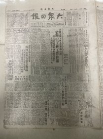 1949年(大众日报)9月15号,4开6版, 山东省人民政府,济南市民人民政府,联合紧急布告;省举行工会工作会议,致中共中央毛主席电;山东烟草公司,南京举行各界代表会,解放以来的南京公营工业生产综述,