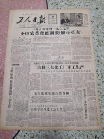 生日报工人日报1957年10月26日(4开四版)一九五六年到一九六七年全国农业发展纲要修正草案;大胆坚决彻底地改进工会工作;吉林三大化工厂开工生产