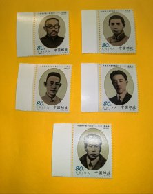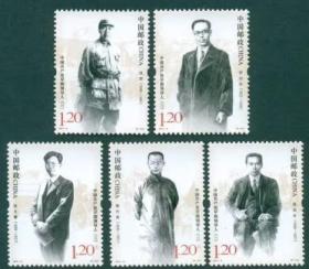 新中国邮票:2001-11J 中国共产党早期领导人纪念邮票(第一组)(全套5枚,王烬美、蔡和森、赵世炎、邓恩铭、何叔衡)
