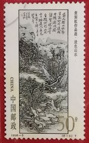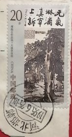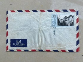 中国近现代著名画家刘海粟(1896-1994,江苏常州人)签名封,骑缝签在1980年刘海粟的作品《黄山云海奇观》邮票上,该邮票为联合国教科文组织中国绘画艺术展览纪念系列。该签名封品相如图,有折痕。