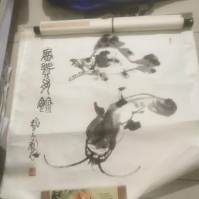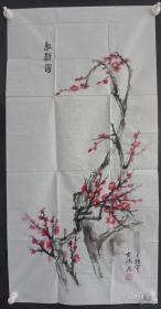 著名画家、《白求恩》《柯棣华》系列邮票设计家 靳合德 国画作品《退耕还林画》一幅,纸本软片,尺寸约122*68厘米, 带靳合德钤印,带靳合德签名实寄封。