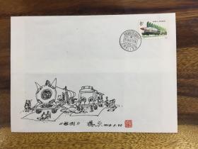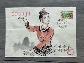 国防建设邮票原画作者,著名画家杨奕手绘封一件----检测,贴国防建设邮票,销“中国酒泉卫星发射中心”原地邮戳。高度极限,非常难得。采用宣纸特制信封绘画,得自作者本人。