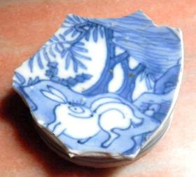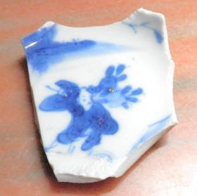 老古董瓷标本大明成化年制款林中白兔子青花瓷碗具瓷片明代早期老陶瓷器真品收藏瓷具