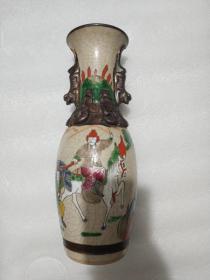 晚清哥釉铁锈花五彩刀马旦人物花瓶 成化年制底款 清代 瓷器 全品