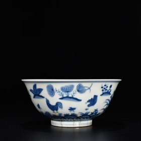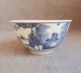 大明成化年制款青花人物碗(高6.3厘米直径12厘米)