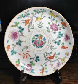 欧洲回流 清代粉彩花卉纹盘 成化年制款