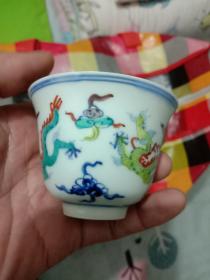 清代斗彩寄托款大明成化年制龙纹马蹄杯