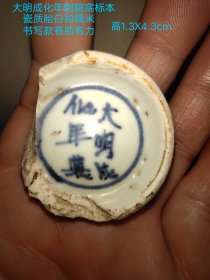 大明成化年制青花碗标本, 瓷质胎白如糯米, 书写款苍劲有力 局部有残缺, 难得的学习标本