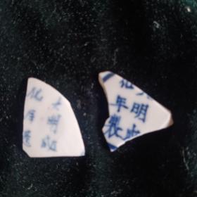 明清老瓷片两个,大明成化年制款,两种写法各不相同,极好的标本,单个3.7*2.2公分,实物如图所示藏品转让不退换请理解非偏远包邮。
