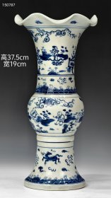 【大明成化年制款】青花通景“仕女人物”人物纹瓣口花觚。 图中花觚通体平等青钴料绘制,青花发色纯正,绘笔流畅,分水技法娴熟,深、浅晕染,明暗秩序,层次分明,极为精美。所绘人物形象栩栩如生,生动邈然,笔触熟练流畅,纯熟自然,肤发衣物无一不精细入微。整体画篇疏朗分明,主题突出,简洁明了,其器形端庄周正,健硕挺拔,敦厚古朴,一眼大开门,品相完整,成色如图。