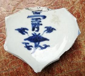 老古董瓷标本大明成化年制款孩童背菜青花瓷片明朝代早期老陶瓷器包老真品瓷具收藏
