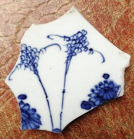 老古董瓷标本大明成化年制款鸬鹚巡守图青花瓷片 明朝代早期老陶瓷器包老真品瓷具收藏