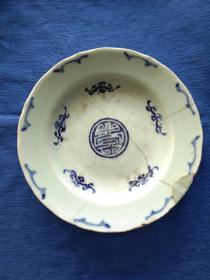 青花八角盘,底款"大明成化年制"