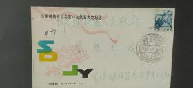 用山东省集邮协会第一次代表大会纪念封做载体,由福建建瓯东峰镇寄建瓯县曾县长的实寄封,封背面贴20分普通邮票,封正面盖黑色的济南市第二次邮票交换周的纪念邮戳,趣味品