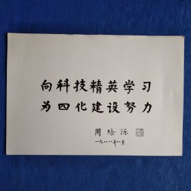 印刷品书法图片向科技精英学习为四化建设努力周培源题词中国科学院院士著名流体力学家理论物理学家中国近代力学奠基人和理论物理奠基人之一纸制品收藏