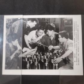 老照片 新闻展览照片 新华社发行 安徽省芜湖重型机床厂车工一班的团员、青年,把理想与现实工作结合起来,积极为四化立功·他们加工的产品出口欧亚各国,这个班也被省机械厅命名为「质量信得过班组」。
