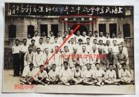 民国老照片:民国上海威海路414号—上海市私立民立中学,1945年6月,初中三年级甲组师生合影。大门可见“苏氏小学”字样。此期校长:苏本铫。——校简史:1903年祖籍福建人苏氏兄弟在南市安仁里旧居创办民立上海中学堂,首任校长:苏本铫(原籍福建永定人)。1909年迁南市大南门中华路,更名民立中学。1937年迁沪西地丰路(今乌鲁木齐北路)。1940年迁威海路414号(今681号,原邱渭卿兄弟兴建邱氏…