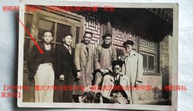 民国老照片:民国北平(北京),1946年秋末,杨乾利(左一)合影,西服为“行政院善后救济总署”所发。赠:藻(杨乾藻)、秀、森(杨乾森)存念。有背题。——备注:行政院善后救济总署,“行总”的全称。国民政府执行联合国善后救济总署任务的机构。1945年1月成立,隶属行政院。原设重庆,后迁南京。在浙江、福建、上海等省市…【桐阴委羽—泸州中学、重庆大学冶金系毕业,湖北武汉钢铁设计研究院——杨乾森私家系列】