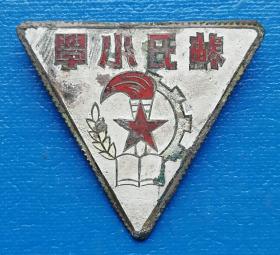 苏氏小学校徽——五十年代徽章校徽证章奖章纪念章类。(《成绩报告单》不在出售之列) 今上海市静安区民立中学。1903年(清光绪二十九年),祖籍福建的苏本立、本炎、本铫、本浩昆仲,奉父遗命,在南市安仁里旧居创办民立中学及苏氏小学。1909年迁南市大南门中华路,1937年"八.一三"事变中毁于日军炮火。同年9月暂迁沪西地丰路(今乌鲁木齐北路)。1940年迁威海路414号。1956年改为公办,