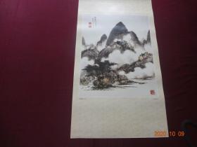 山水图(吴镜汀 作)[规格尺寸:60*34CM,1张]【该张图系“恭贺新禧 中国现代名家画选(1990年)”挂历中的其中一张,月历被裁,在意者请勿拍】【实物拍照 包老保真】