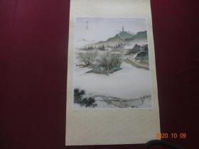 山水图(何香凝 作)[规格尺寸:60*34CM,1张]【该张图系“恭贺新禧 中国现代名家画选(1990年)”挂历中的其中一张,月历被裁,在意者请勿拍】【实物拍照 包老保真】