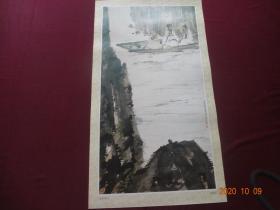 赤壁舟游图(傅抱石 作)[规格尺寸:60*34CM,1张]【该张图系“恭贺新禧 中国现代名家画选(1990年)”挂历中的其中一张,月历被裁,在意者请勿拍】【实物拍照 包老保真】