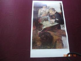 编织的姑娘[(德国)莱勃尔 作]【该张图系1986年“世界名画”挂历中的其中一张,月历被裁,在意者请勿拍】{规格尺寸:59*35CM,1张}【实物拍照 包老保真】