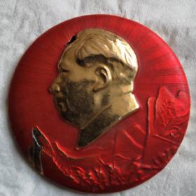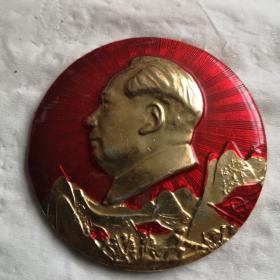 毛主席像章(正面图:毛主席头像 锯齿形宽边光芒线;背文:热烈欢呼九大胜利闭幕 敬祝毛主席万寿无疆 沈政敬制)[规格尺寸:5*5cm]【实物拍照 品质自鉴】