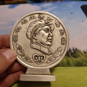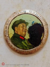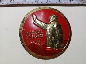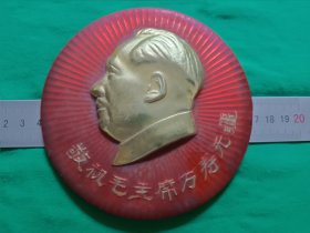 大像章,约十公分左右,敬毛主席像章,祝毛主席万寿无疆像章,直径十公分,夜光的品相好,庆祝毛主席诞生七十六寿辰所做,数量极其少,珍贵,品相如图自定,大刀不回,非诚勿扰,售后非假不退。保真。