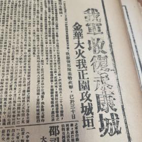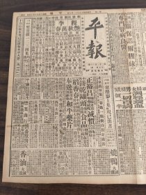 中华民国三十七年 发行人 李子宽 《大公报》 一大张! 鲁西国军扩大攻势平汉线收复驻马店 承德外围战况转沈寂…… 川康平民商业银行