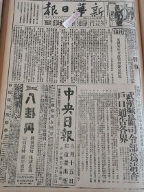 1938年新华日报 再论战局扩大。金牛镇日寇被击退 广州我军转移阵地。八路军收复龙泉关,痛击围攻五台敌,破坏正太线,击毙敌军司令。新四军抗战一年。绥西我军石拐沟获胜.交清路上我痛歼敌军.汾城农民自卫队夜泅袭敌.广州我军转移阵地,我作有计划撤退.广州我军转移阵地,我作有计划撤退.苏浙战况:房村双沟血战极烈.敌机轰炸河南各县.株州被炸.寄港邮件由昆明转递.