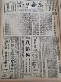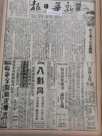 1938年新华日报 大江两岸战况趋紧 我军收复廖家山。日寇轰炸梧州。我进迫离石近郊 赣北占地见闻 收复廖家山 铁一样团结起来的华北战场.〔义勇军之母〕赵老太太定今日离香港赴南洋,临行发告港粤同胞书.游击队一部袭入汾阳.柳林东激战,我进迫离石近郊.光山松山争夺剧烈.敌炸镇海,投弹五十余枚.敌寇暴行:狂炸梧州,投弹集中文化机关.敌机轰炸信阳.